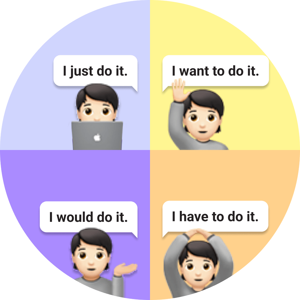 With the help of the junior designer, I started with a review of existing customer knowledge, like interview notes and documentation of our existing Personas. We were looking for values, needs and wants and how they correlated with behaviours. Cross-referencing resources about theories on motivation and other studies we gained more confidence in creating our own model. We started drawing a rough picture of four different mindsets and reviewed these with the wider design team. This back and forth ensured we would create an artefact that could be widely adopted.