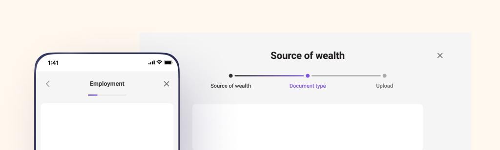 The digital experience of an investing platform has lots to explain. The concept of a stepper – a visual representing a multi-step process – got introduced as one of the key UI components to help navigate through complex processes. It appears during the on-boarding flow and regulatory check-ups. Now was the time to formalise it as a standard element for a modal dialog. This worked hand-in-hand with the re-design of the document upload experience.